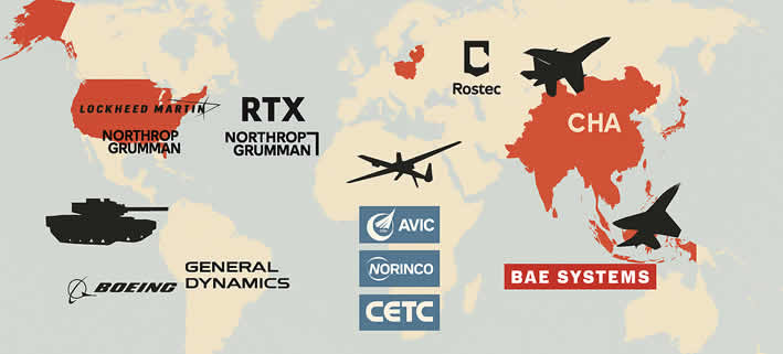 An der Spitze des globalen Waffenmarkts stehen weiterhin die Vereinigten Staaten. Fünf der zehn umsatzstärksten Unternehmen kommen aus den USA. Lockheed Martin, unangefochtener Branchenprimus, erzielte 2023 Waffenverkäufe im Wert von 60,8 Milliarden Dollar – rund 90 Prozent des Konzernumsatzes. Besonders gefragt: Kampfflugzeuge wie die F-35, Hightech-Raketen und Abwehrsysteme, die weltweit exportiert werden – häufig mit politischer Rückendeckung aus Washington.